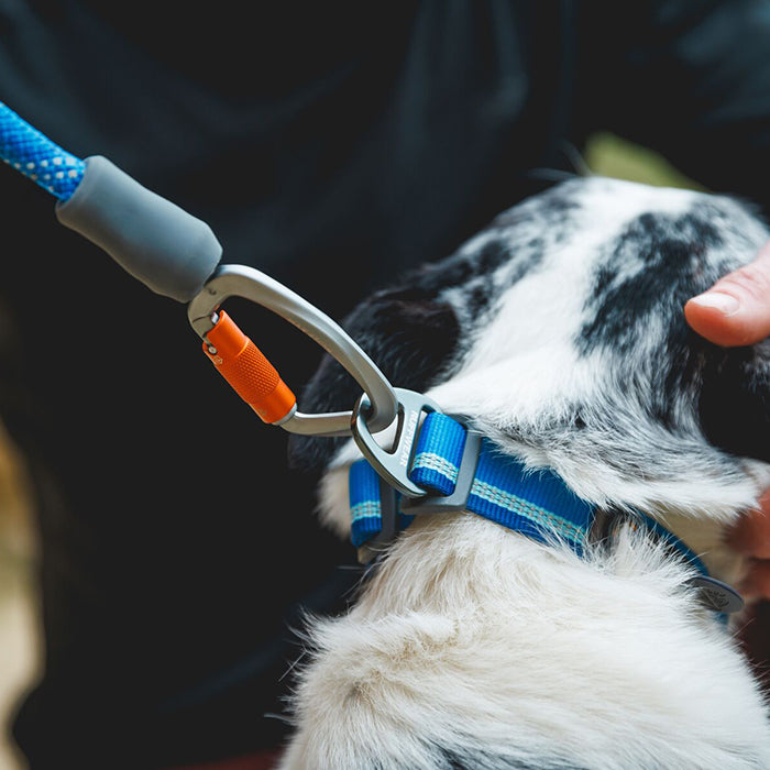 使い方は簡単で、カラビナの開口部をツイストして開き、ハーネスやカラーに接続するだけ。これまでの様に回転させなくても開口部が閉じる際にロックします。